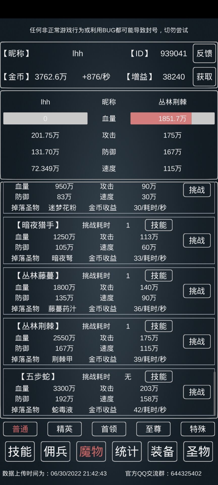 小号的这个四维属性其实非常不极限,就打了3-4次就130w防就过了,主要靠的是花粉圣物的眩晕作用,我下个攻略会仔细谈一谈这个流派的核心以及后续主要思路。