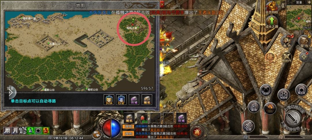 在盟重图找到合区boss并吸引其仇恨后,将boss带到盟重(596.57)的位置。