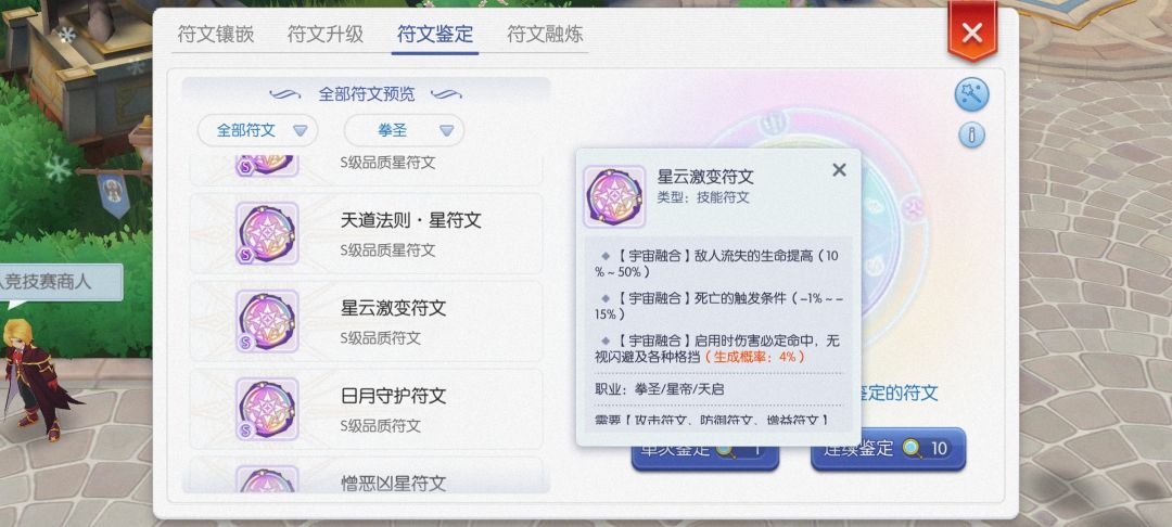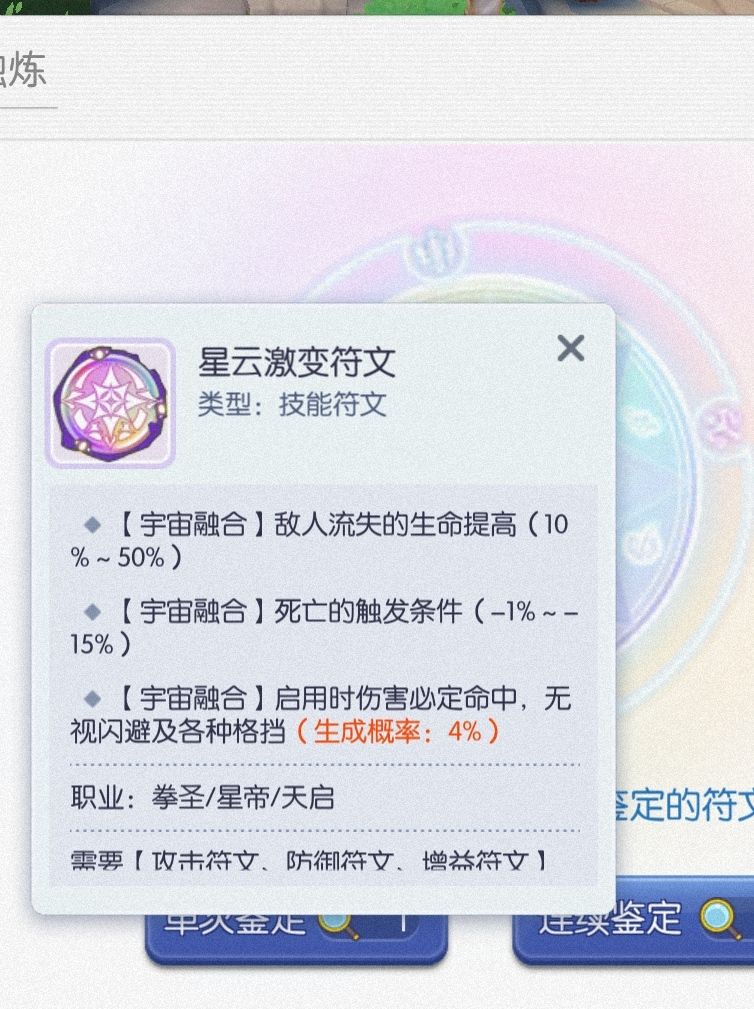 而星象流需要攒星星,需要符文的踢技加速,通过普通攻击触发踢技或者释放踢技来攒星星,而且万象星陨的伤害只有对单体目标才会非常高,一旦范围内目标变多他的伤害会变得非常分散(不过打本一般只有一个boss不用担心这点)