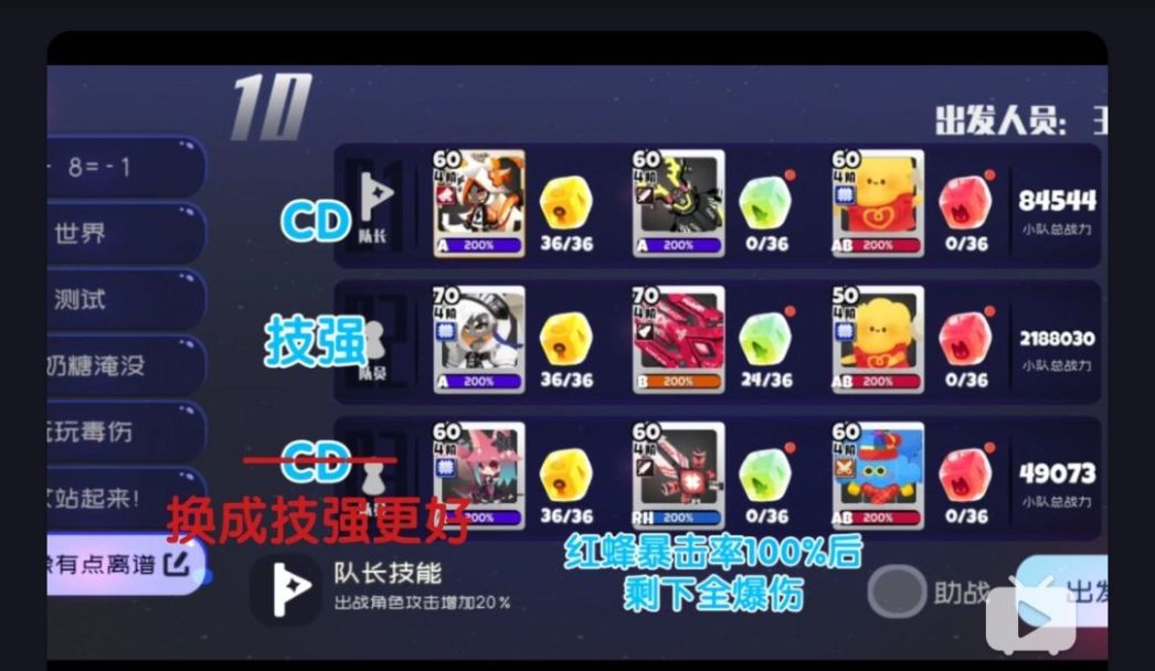 斑鸠放在队长位置会伤害更高,视频里没换是直接从上一个队伍改的懒了没调