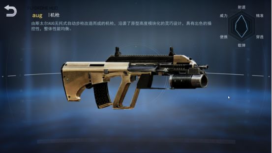 首先介绍SSR品质的三把机枪,首先是aug,是由步枪改造而成,因此aug不仅仅有机枪的特点还兼具了步枪的特点,整体十分均衡,操纵性稳定。