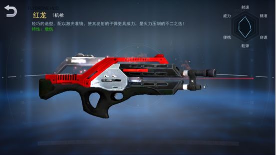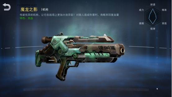 接着是SR品质的枪械,第一个是魔龙之影,拥有子弹命中敌人概率回复生命的特性,再加上自身稳定的输出能力可以在PVP以及PVE中稳定发挥。