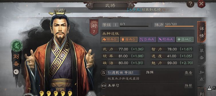 刘备:推荐战法【陷阵营、暂避其锋】推荐兵书【九变、援其必攻、励军、掩虚】