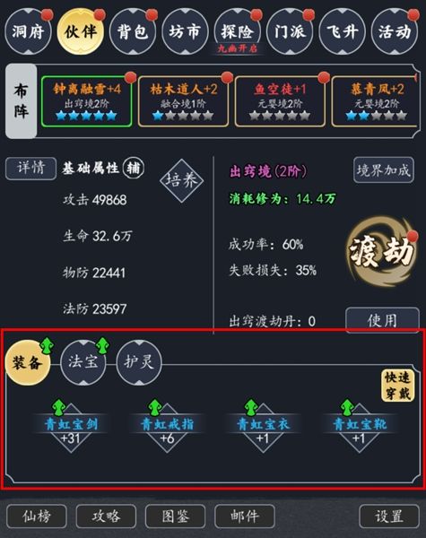 好啦,关于装备和法宝的最基础介绍就到这里。想要合理地搭配、强化装备和法宝,还需要道友们在实战中多多总结体会,从而找到属于自己和队友的最佳配装。