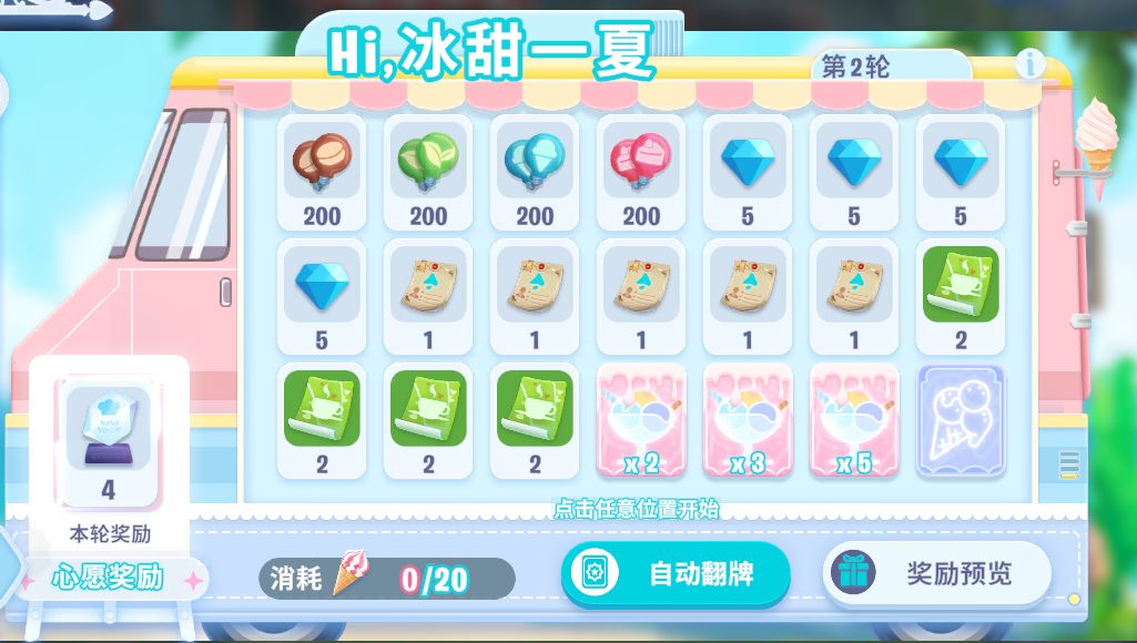 店长参与翻牌许愿,满足特定道具新员的同时,也会获取海量道具和游戏福利!