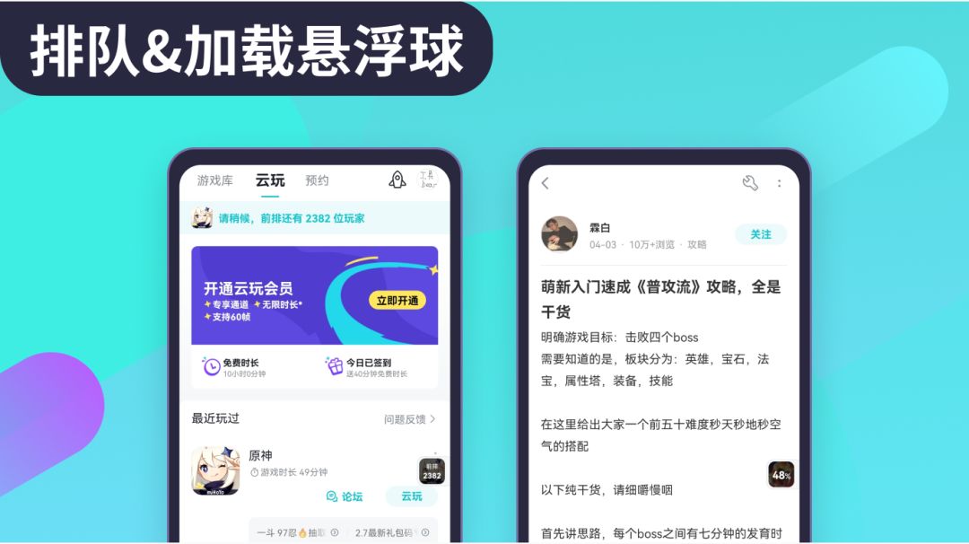 在云玩排队 / TapPlay游戏加载的时候,点击后台排队/加载,进行相应授权,就会创建对应的悬浮球啦。