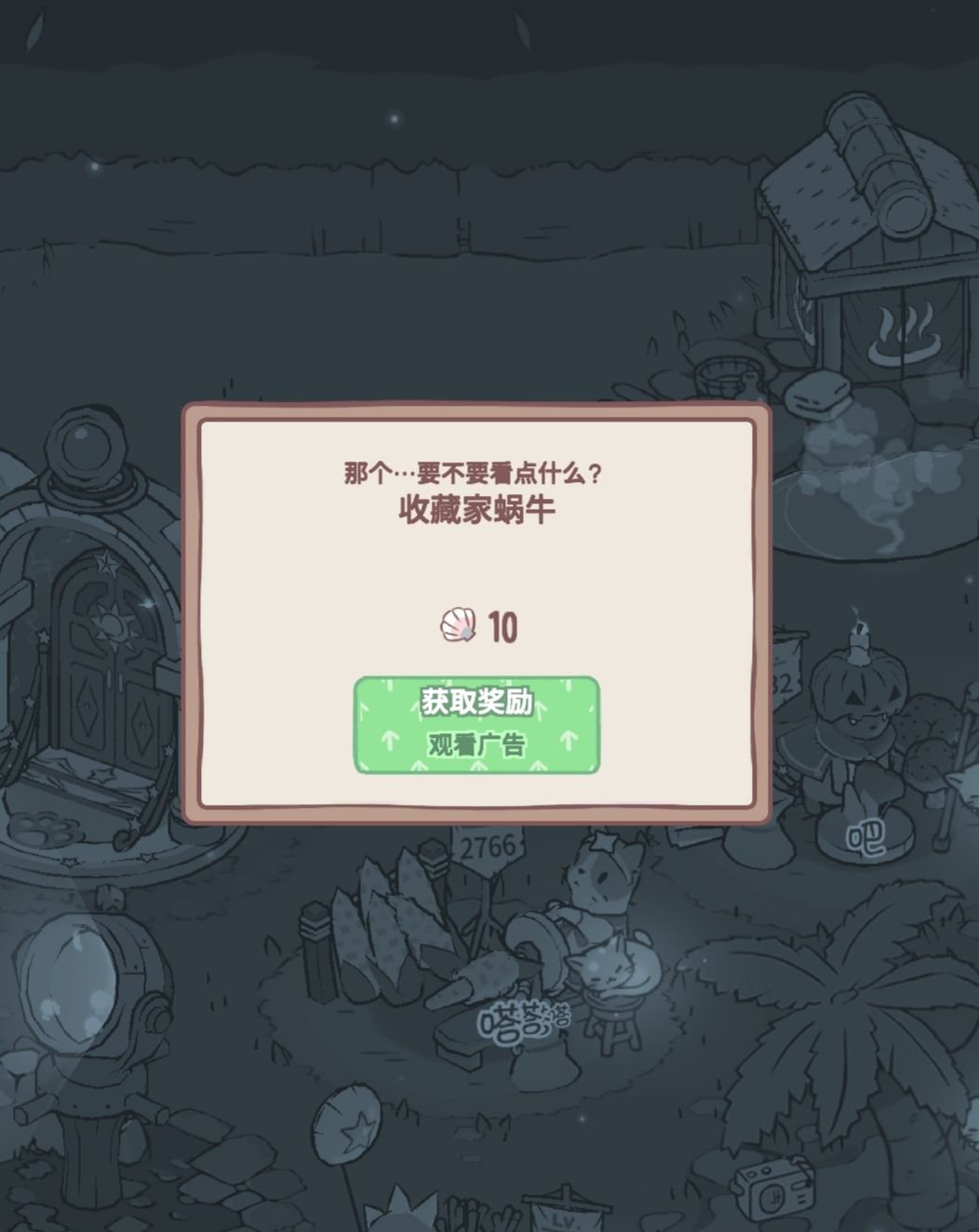 找蜗牛可以看广告获得10个贝壳,🐌出现的时间通常在白天到黑夜(或者黑夜到白天)的交界,左边会出现🐌图标