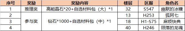 推理奖(1位):高能晶石*20+自选材料包(大)*1