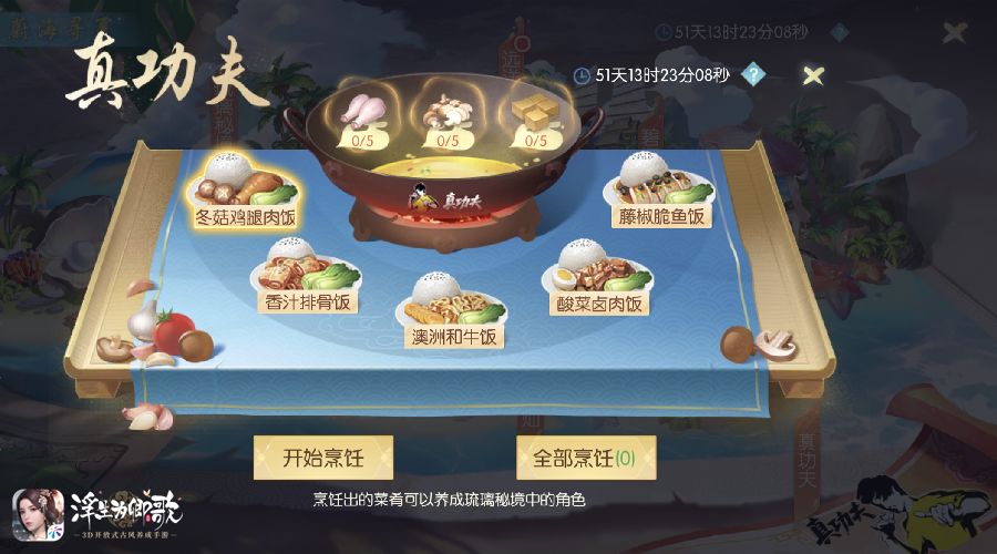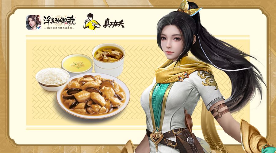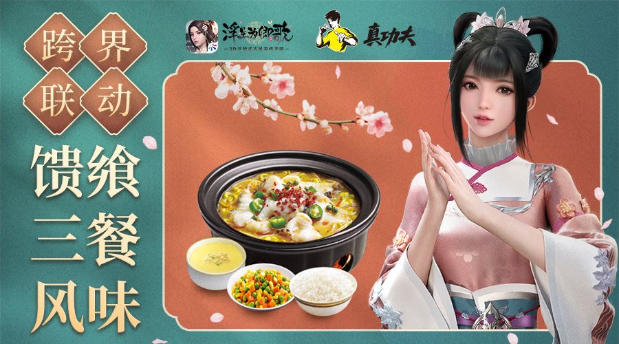 《浮生为卿歌》手游一直以坚持弘扬国风传统文化为核心,为了还原一个过目难忘的繁华古风大世界,做出了诸多不懈的努力。此次与真功夫进行跨界联动,除了线下专属套餐以外,游戏内更有全新活动等待阁下前来参与。在活动期间,阁下参与日常玩法可获得真功夫食材并制作菜肴;菜肴可用于养成琉璃秘境中的角色,每周完成指定任务后阁下还可以领取任务奖励哦!