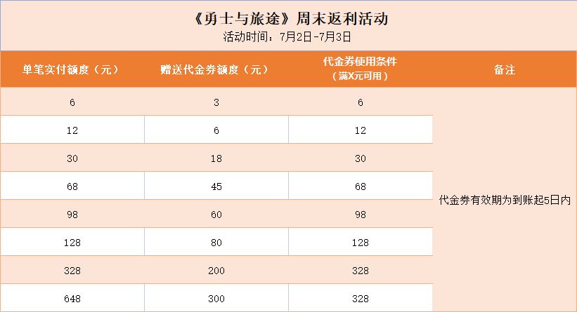 在本游戏内单笔实际支付金额达到指定金额,即可获得代金券,即充即返。