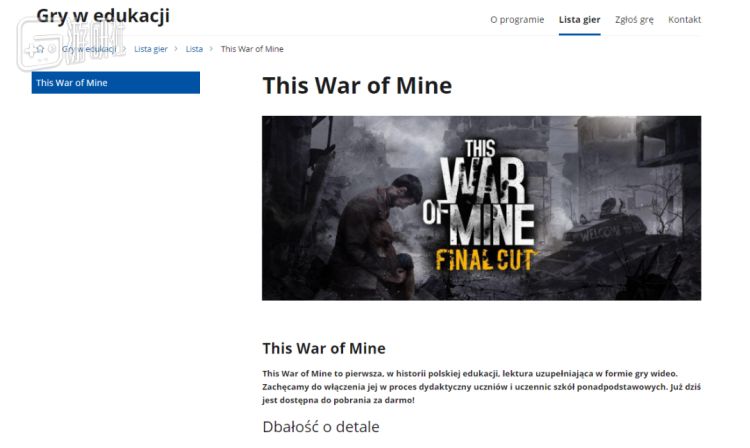 最近,波兰政府干脆把这个游戏直接放进了政府官方网站里,允许并提倡学校和老师免费下载、作为课堂教学材料来使用。在其专门页面上,官方这样介绍该游戏:“这是波兰教育史上第一部电子游戏形式的补充读物”。