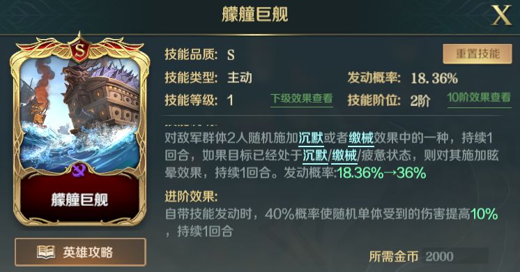 极大提升自带主动技能发动概率。