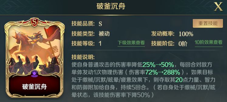 与横扫六合、黑帝斯序曲构成完美联动,百分比大幅度提升自身力量值。