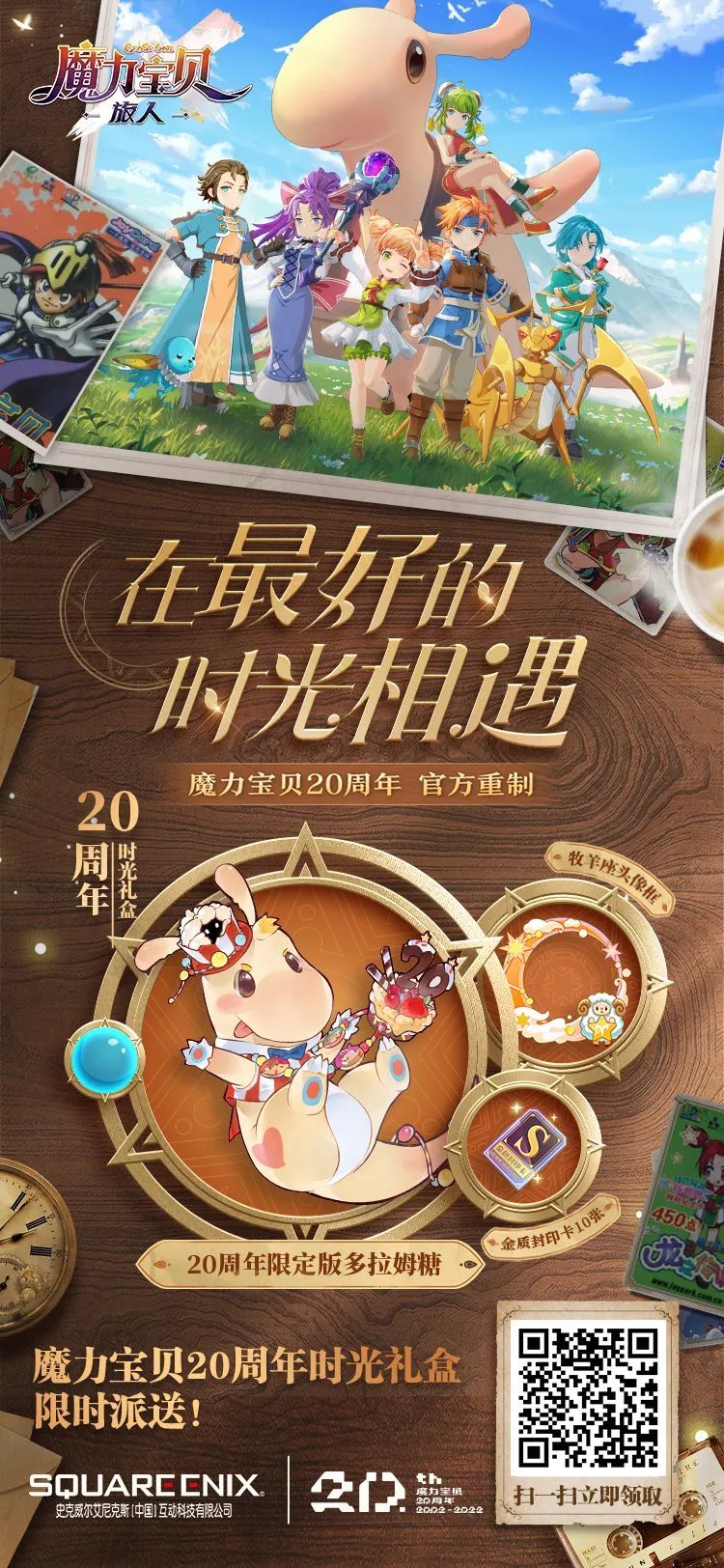 参与20周年庆典活动,邀请3名好友预约即可获取:奖励——纪念头像框、纪念骑宠时光多拉姆糖(已驯化可直接乘骑)、金质封印卡*10;