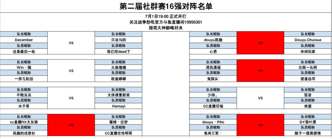 第二届怒吼社群赛16强今晚19:00开赛!
