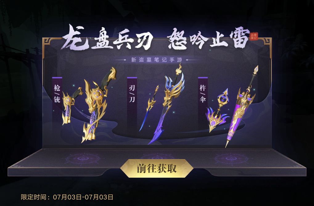 活动丨龙盘兵刃,怒吟止雷!全新炫酷特效武器外观等你来拿!