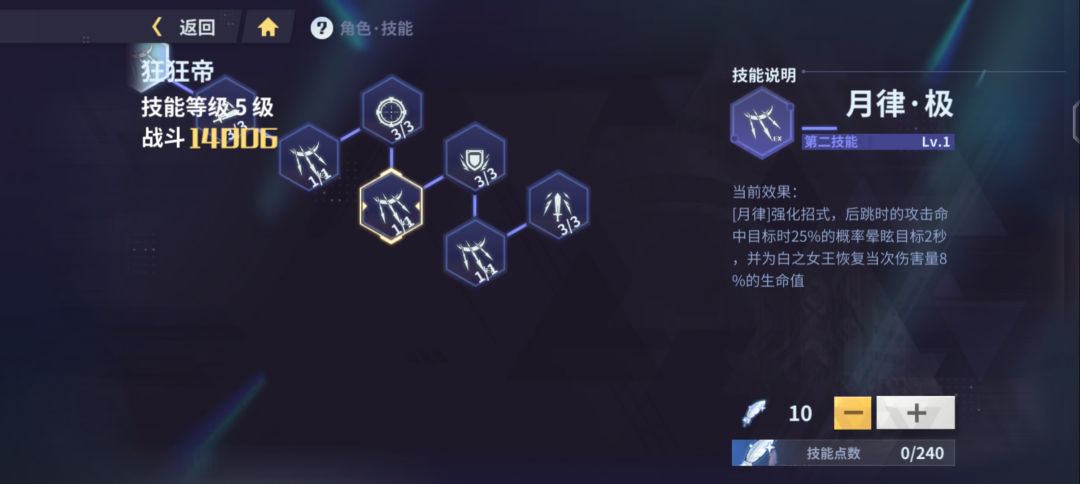 5命白王有1分钟一次的无敌回血buff,无需满命。白王近战或者枪形态单一状态输出时间保持在15秒内,超过15秒必须切换武器状态输出保证buff不掉。爬无尽辅助满命纯攻击和专属质点的二亚是首选,有二亚辅助和没有二亚辅助的白王不是一个级别。