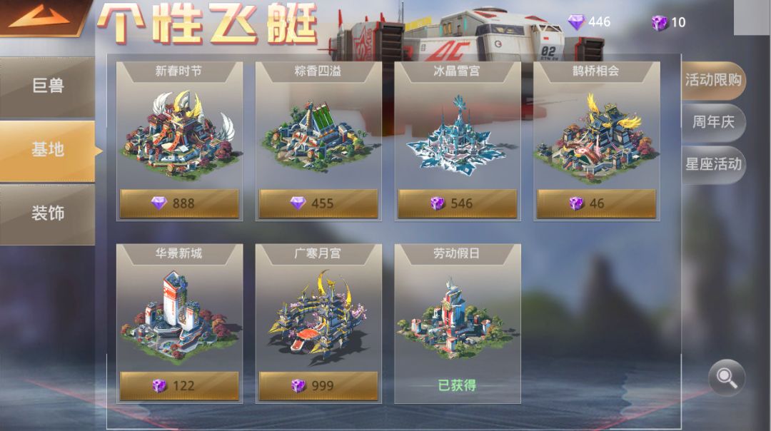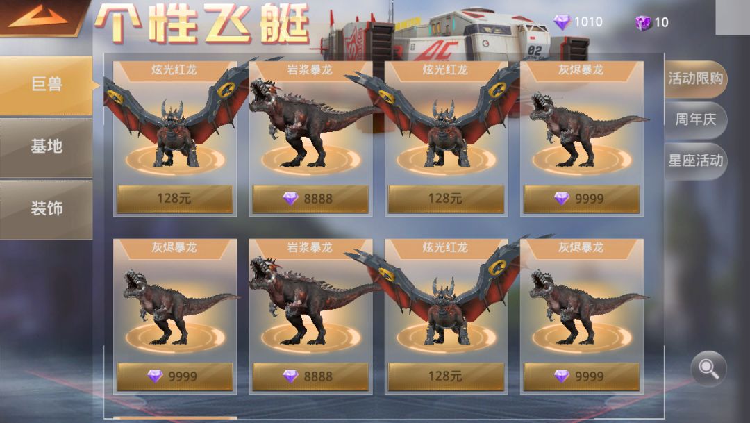 2) 个性飞艇售卖巨兽皮肤、基地皮肤、及主城雕像