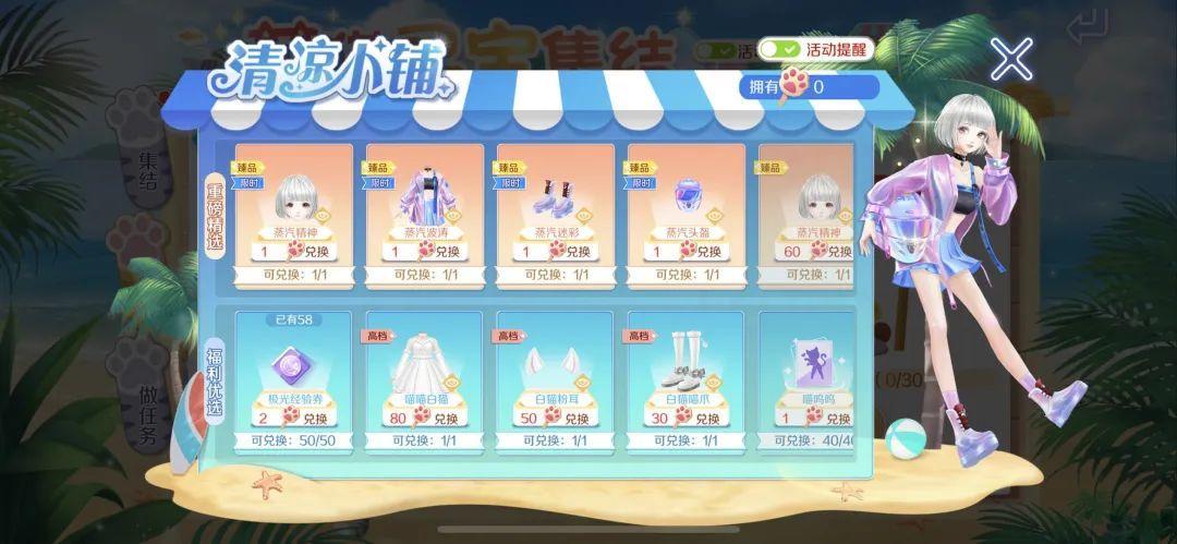 现阶段还可兑换极光抽奖券*50&喵呜呜动作卡!活动期间清凉小铺资源不会下架,小主人们可随时兑换哦~