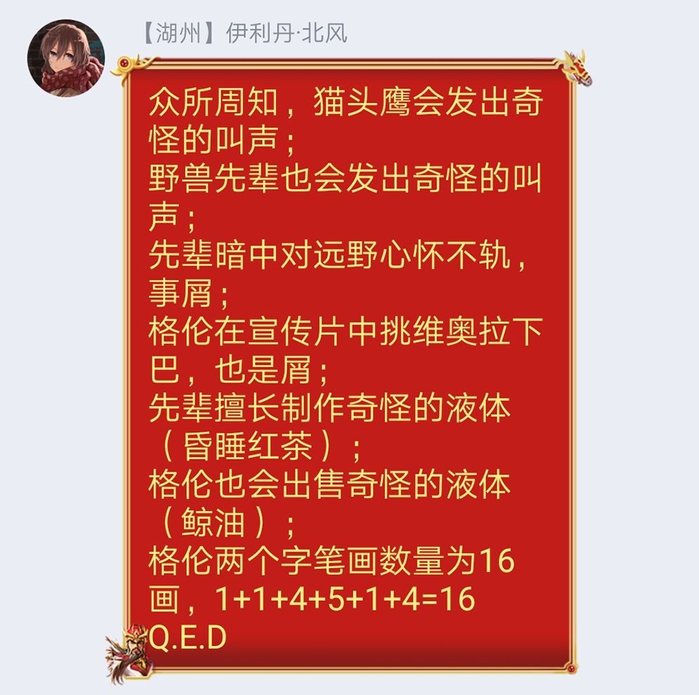 由于在群内某个官方内鬼的爆(bei)料(ci),关于格伦真实身份的讨论再次陷入了jiang局