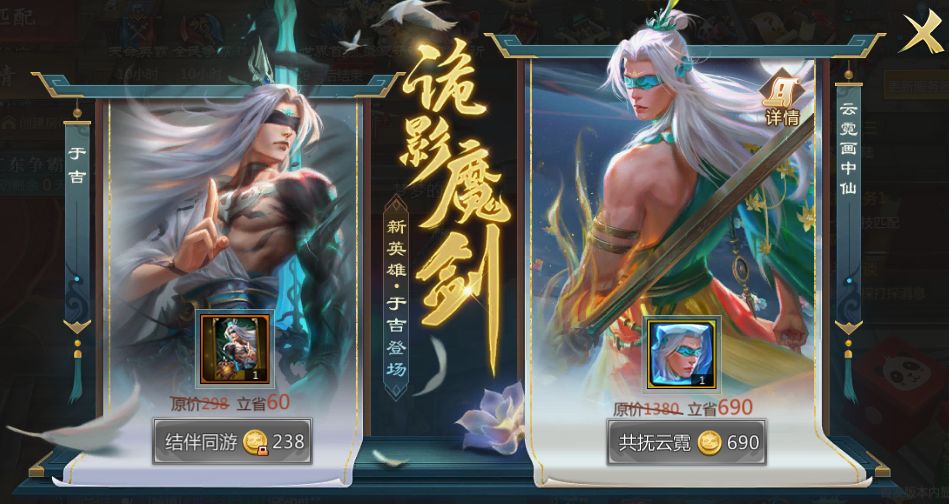 在下个版本的诡影魔剑活动中,可以直接用238绑定梦三币购买于吉英雄卡,全新换装云霓画中仙仅需690非绑定梦三币即可获取。