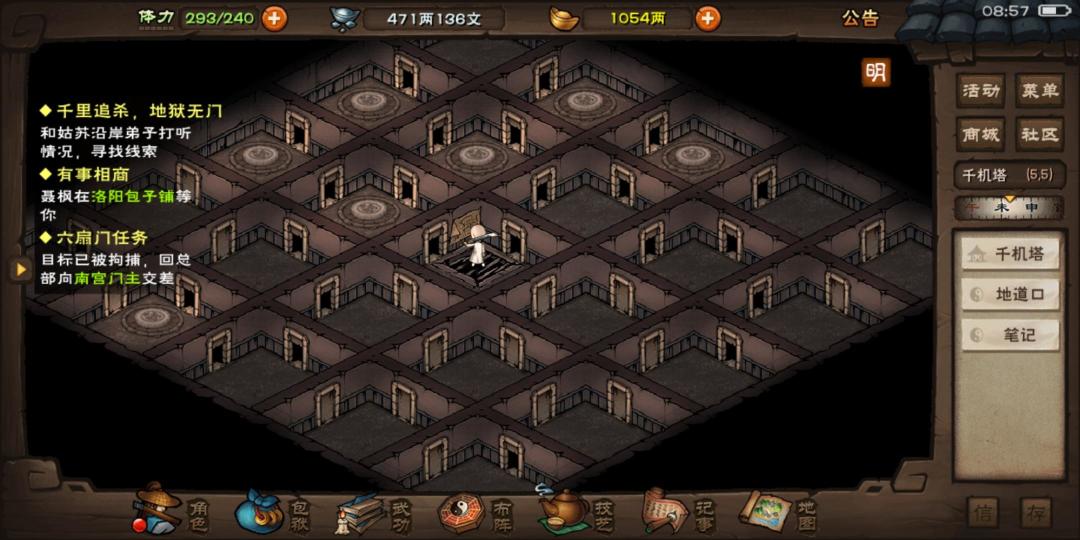 古城(16,7)搜索,找到石门,解锁顺序(答案不唯一):中央,左上,左,右上,下