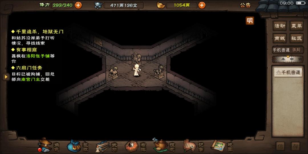 密道里的雕像,其实是四神兽。正确的辩位方式应该是: 南-朱雀、北-玄武、西-白虎、东-青龙。 仔细看雕像,缺的那个就是正确的方位。