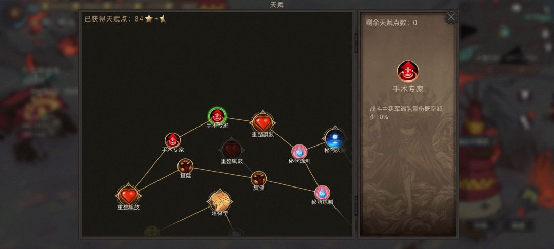 2.天赋页的手术和手术专家点上,有两只满级的雄鹰鹊医,一只凤雏,两只你准备升t6的部队,400+的玉石。你自立后不一定有时间去打异界,所以先做好准备。