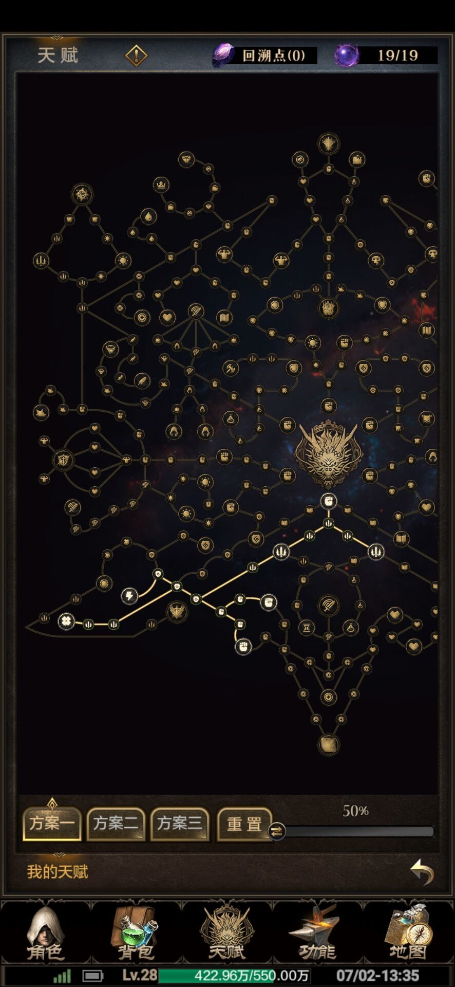 职业选择就不多说了,其他帖子有详细说明。重点说下升级和天赋,老规矩,出生先撸鸡和鹿,最好吃双倍,快人一步后面进幻界就少人抢怪,我就是开区晚上才进的游戏,又进的人多的3区,搞得现在人比怪多,很快打到5级拿上乌木剑就直奔比奇,在这里或者骷髅洞砍到11级就可以打僵尸洞了,10级以后可以点天赋,关键点来了,要想升级快我们必须从下面走,把2个真伤的大点点出来就起飞了,15级点出来后就直奔尸王殿,战士装备穿满可以直接吃药站撸,一个尸王3000经验不要太爽,其他2个远程职业可以走位,这里的怪不主动攻击,好评。尸王殿这一直升到23级,就马上到幻界1层(地图-古代-梦境)这里的怪脆经验超高可以升到30级左右。
