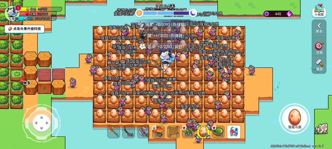 开图之后我们我们就要考虑资源的问题,现在版本资源刷新比之前快了很多,所以我们就需要人力啦(ps:龙力哈哈哈),so需要很多的龙来帮助我们干活,龙干活的条件就是需要饲料,而且需求量比较大,这就要用到我们的科技种植业,点完有机过滤接下来就要点击种植业了,种植我们就要多种龙果,需求量非常大,光有种植业还是不够,我们的饲料需要用到龙果和肉,所以肉也是必须品,肉的来源有龙还有我们可爱的蔻蔻鸟,所以可以就要点到驯兽专家,接下来可以先抓一只蔻蔻鸟,让它先生点蛋,当然不抓也可以,生蛋的效率确实不高,可以优先选择把他打死,死亡掉落也有一个蛋,有几率掉落2个,地图刷新还是比较快的,在出生点的右侧有一块沙地非常适合养蔻蔻鸟哦,我看很多玩家也是选择在这里,资源够的话优先选择做孵蛋器,如果不怎么多的话,做个铲子,蛋也是可以孵化在里面的,龙果,草药什么的同理都可以先种在土里