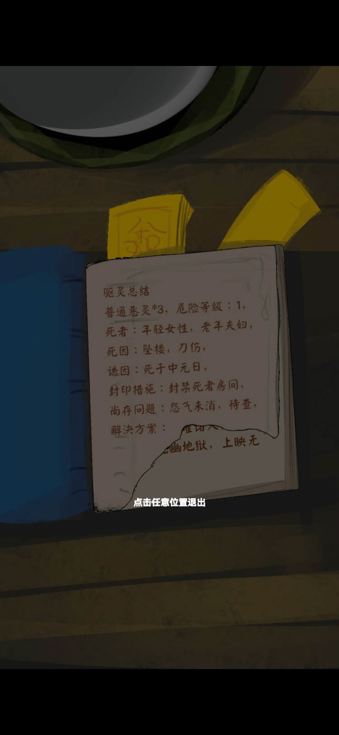 说下故事线哈,大纲就是一对老年夫妇带着自己的孙女住,在7月十五日这天来了个陌生人男人留宿(日记里面),然后就把这一家三口杀了,爷爷和阿婆死于刀子,小女孩是坠楼(个人猜测是js,看倒立鬼的腿,还有穿的衣服是蕾丝睡裙),然后一开始的那个房间就是死去的女孩的房间,而开门后左边那个门应该是阿婆和爷爷的房间(注意推门出去的时候,可以看见第一个房间门口和左边房间一样都挂了红绳和符纸,且第二本书上说封禁方法是把灵封到他们自己的房间)