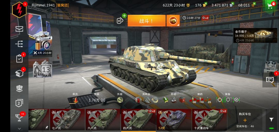 这就是日重的一大特色:硬。在同级房或者班长房中,这算是日重的一大优势。以五级的三重108,六级的十式重战车和八级的四六式为代表,裆部极小或是仅有一条缝,车长指挥塔也比较硬,对于不舍得/不带金币弹的玩家来说,面对这系列车是令人头疼的。