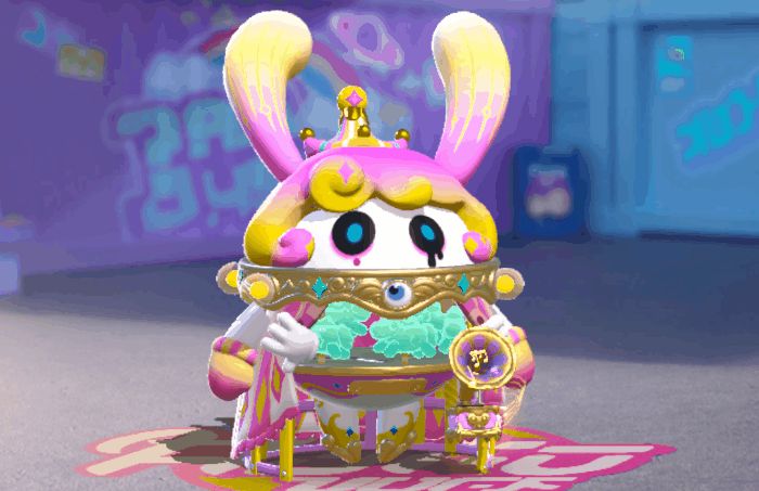 粉紫与明黄的渐变搭配梦幻奇妙,微微下垂的无辜长耳打动蛋心,敞开的双臂像在无声地说着“欢迎来到我的乐园。”