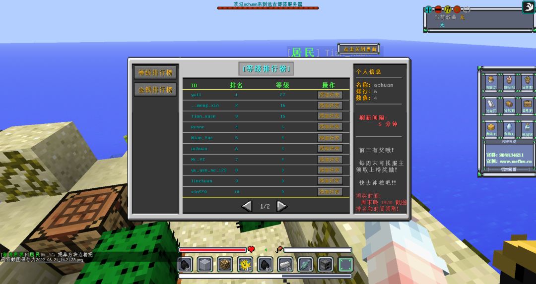 服务器会不定期更新内容!后续会推出手机同服端