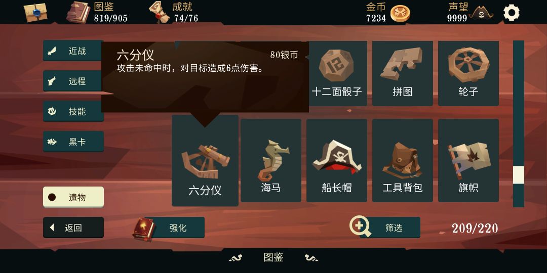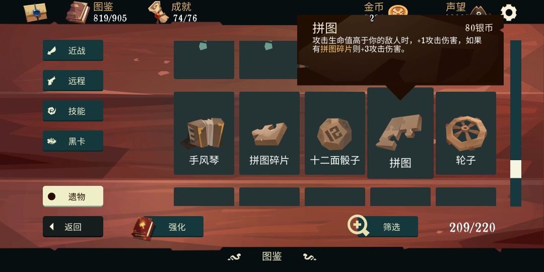六十层的遗物都是80银币,除了拼图能和30层的拼图碎片相互联动以外都没什么需要注意的