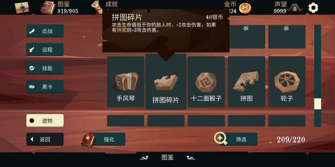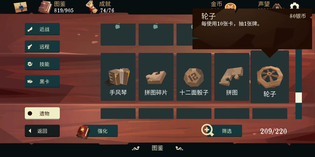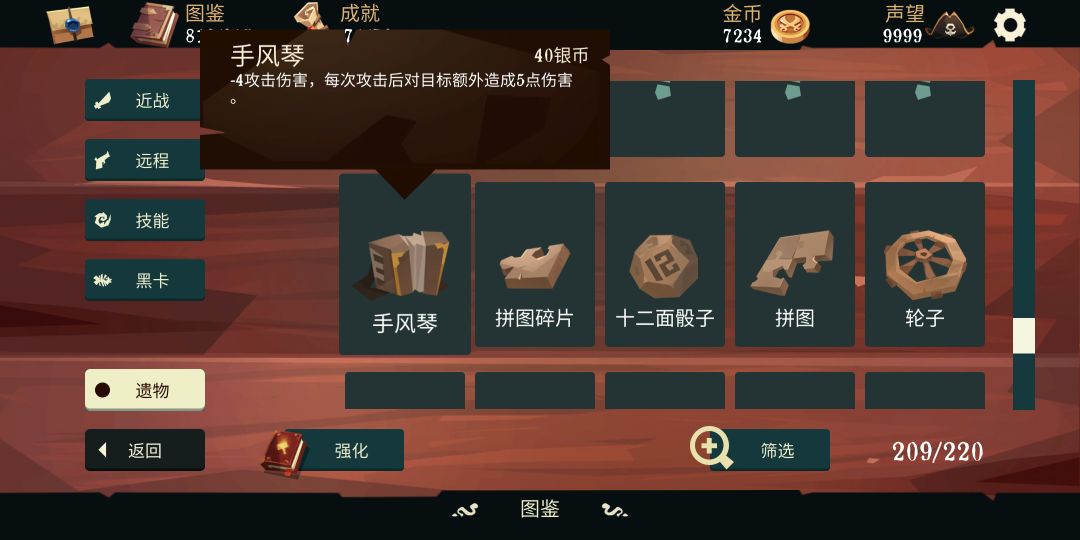 手风琴并不是遇见就拿的神器,因为竞技场的每个遗物栏都很珍贵,看情况决定。