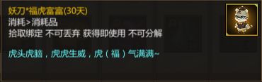 当征战令等级达到43级时,能够获得另外的妖刀*福虎富富(30天)。