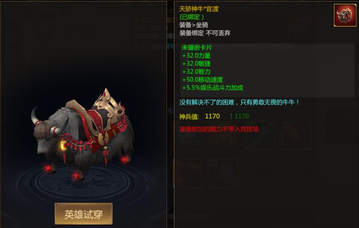第十三届宝箱增加了全新的坐骑,天骄神牛(无双/官渡)。
