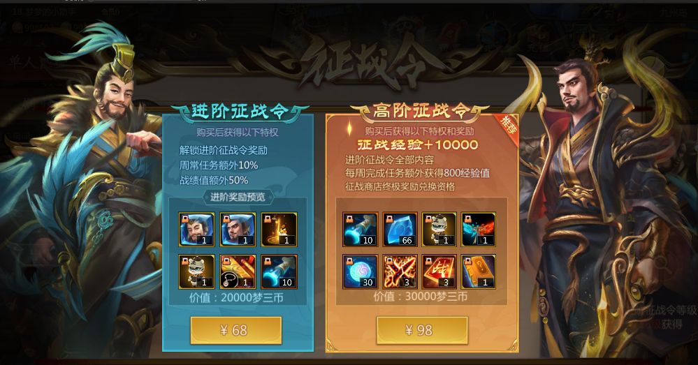 注:如果已经购买了【进阶征战令】,需要升级【高阶征战令】的仙术师可以通过购买界面补足差价进行升级