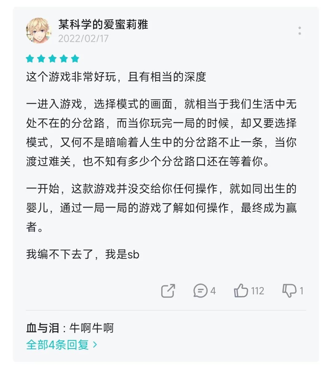 在介绍游戏玩法之前,我们不妨先看看评价的画风,对游戏的赞扬虽然各不相同,但是结尾却出奇地一致:
