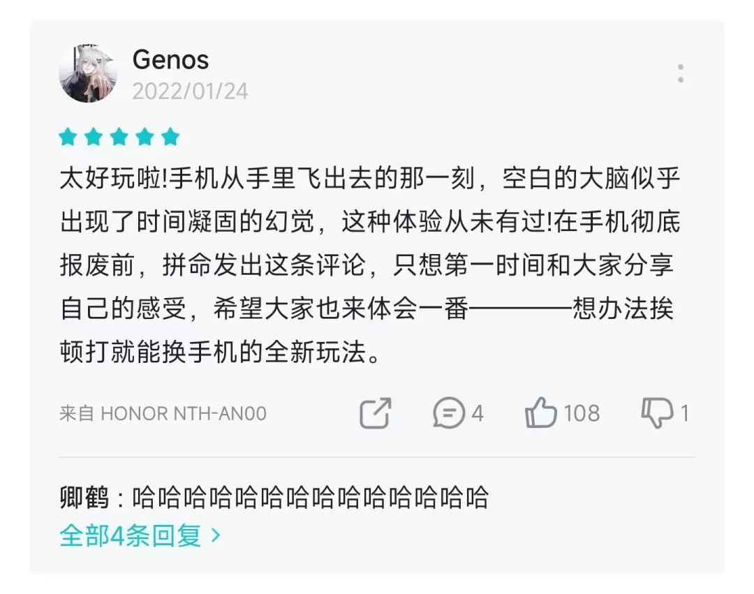 看完这些评价,你大概也能猜到,这就是一款让你不断摇晃手机,在限定时间内尽量拿到高分的小游戏,不仅能愉悦身心,甚至还能锻炼身体,美中不足的就是有点废手机: