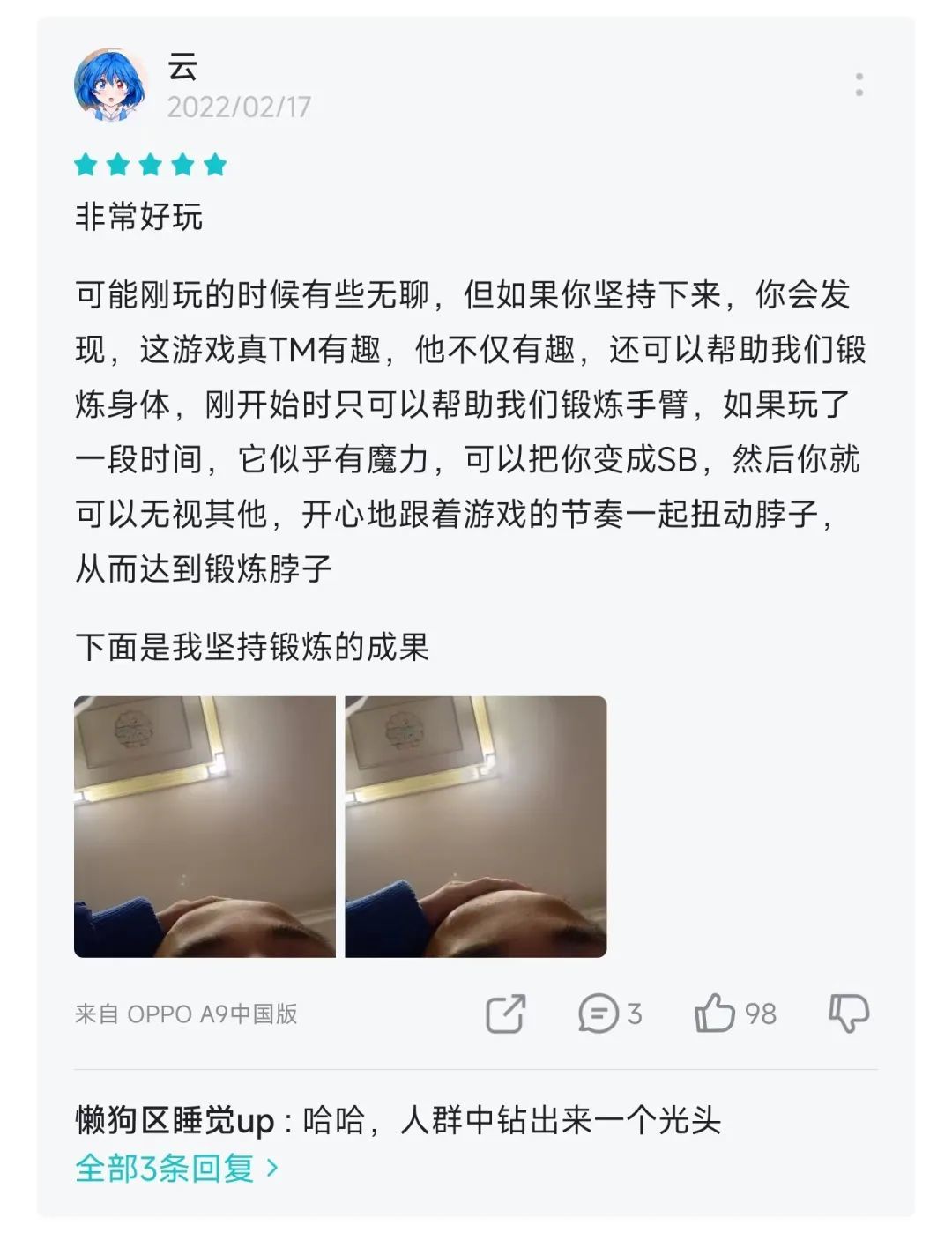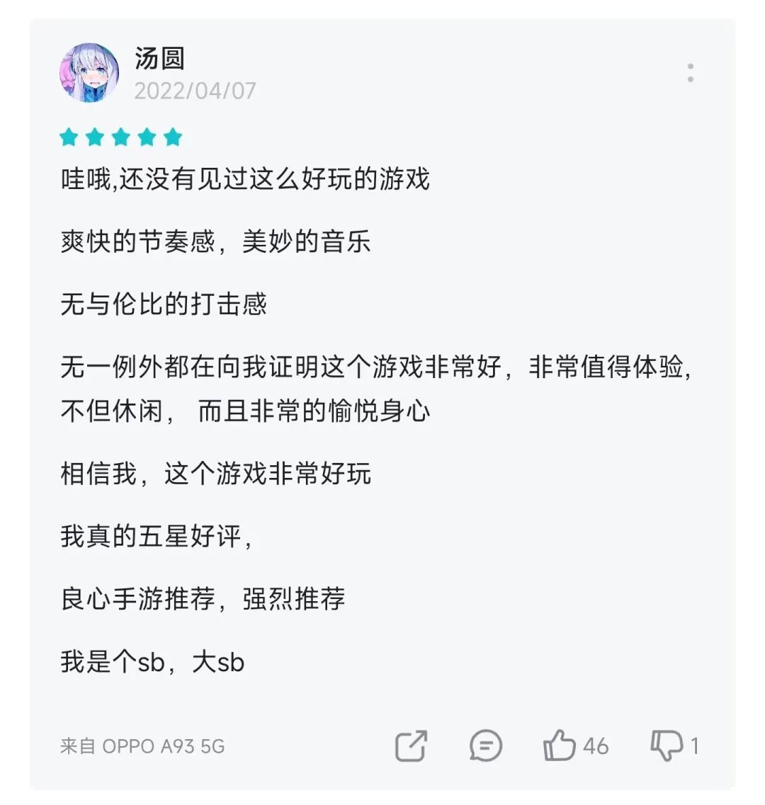 有时候某些游戏的评价区队形会意外地整齐,比如这款《垃圾鸽摇滚》: