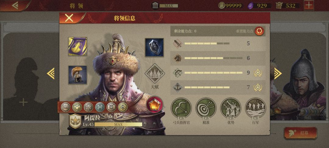 ①阿提拉是唯一拥有无损清杂能力的将领,而且拥有极强的机动力,是常规战第一将;