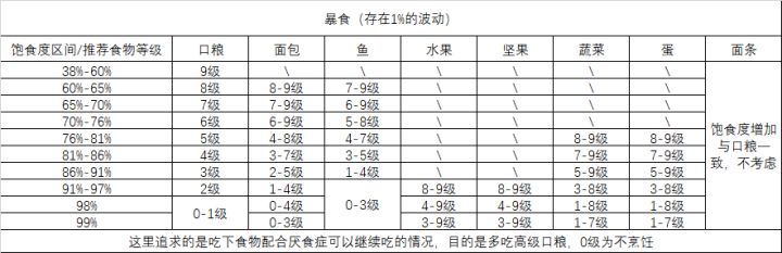 加了一个饱食度在多少的时候应该吃什么食物,应该算比较方便了[已修改,强迫症不允许我明天改_(´_`」 ∠)_]