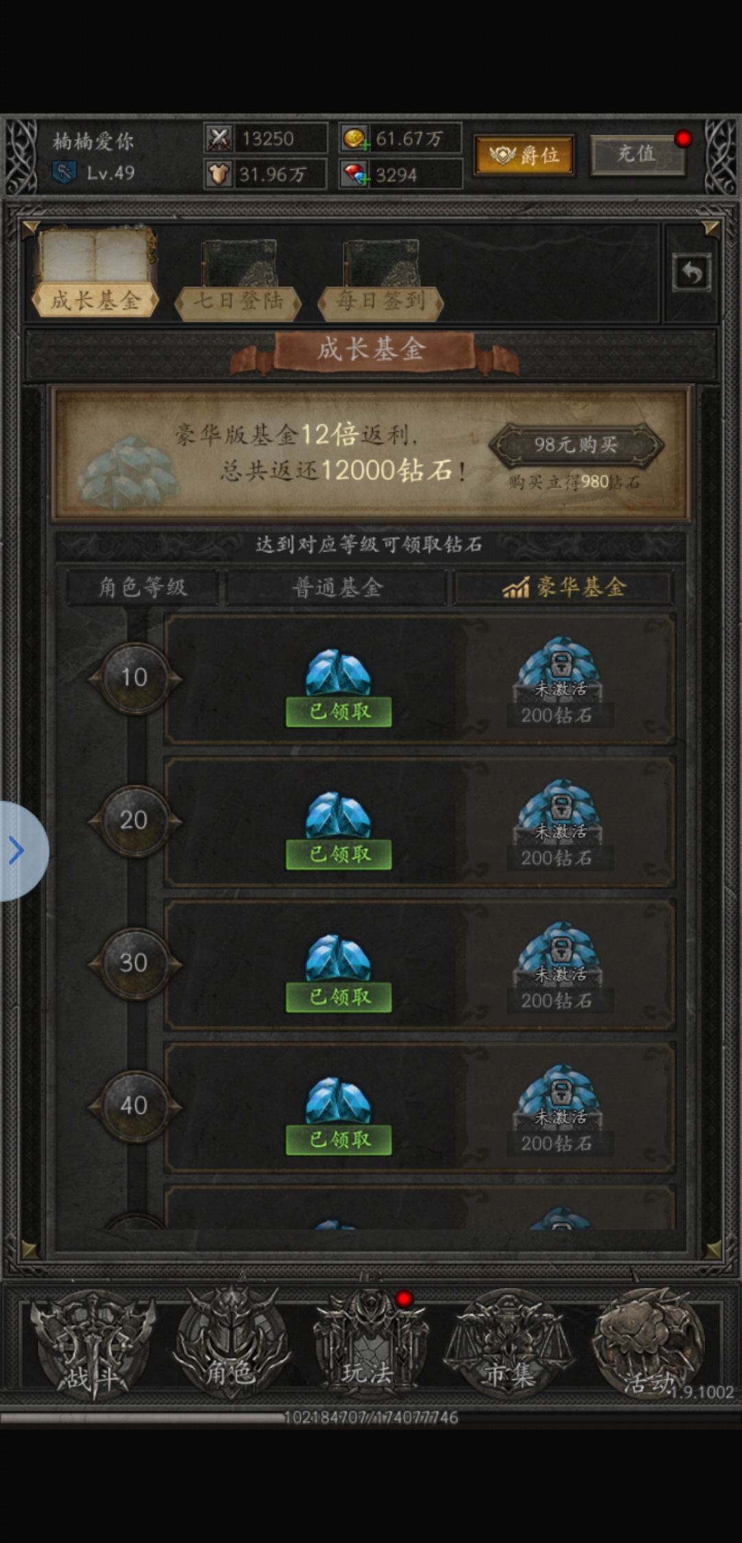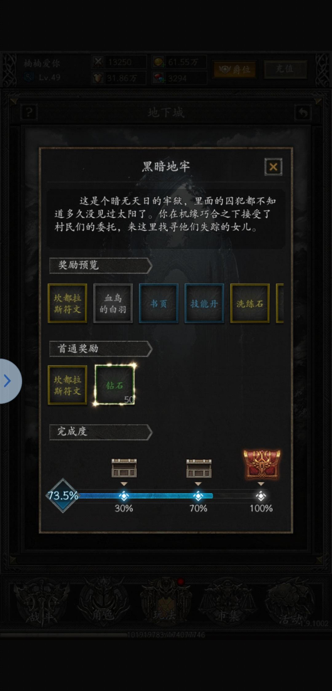 还有地下城新玩法,每天一次白嫖90两次就是180。以上白嫖的砖石足够萌新起步,每天玩起来了,如果喜欢,有条件的朋友再买点礼包什么的就如虎添翼了。后续官方继续更新是兄弟就来砍我!