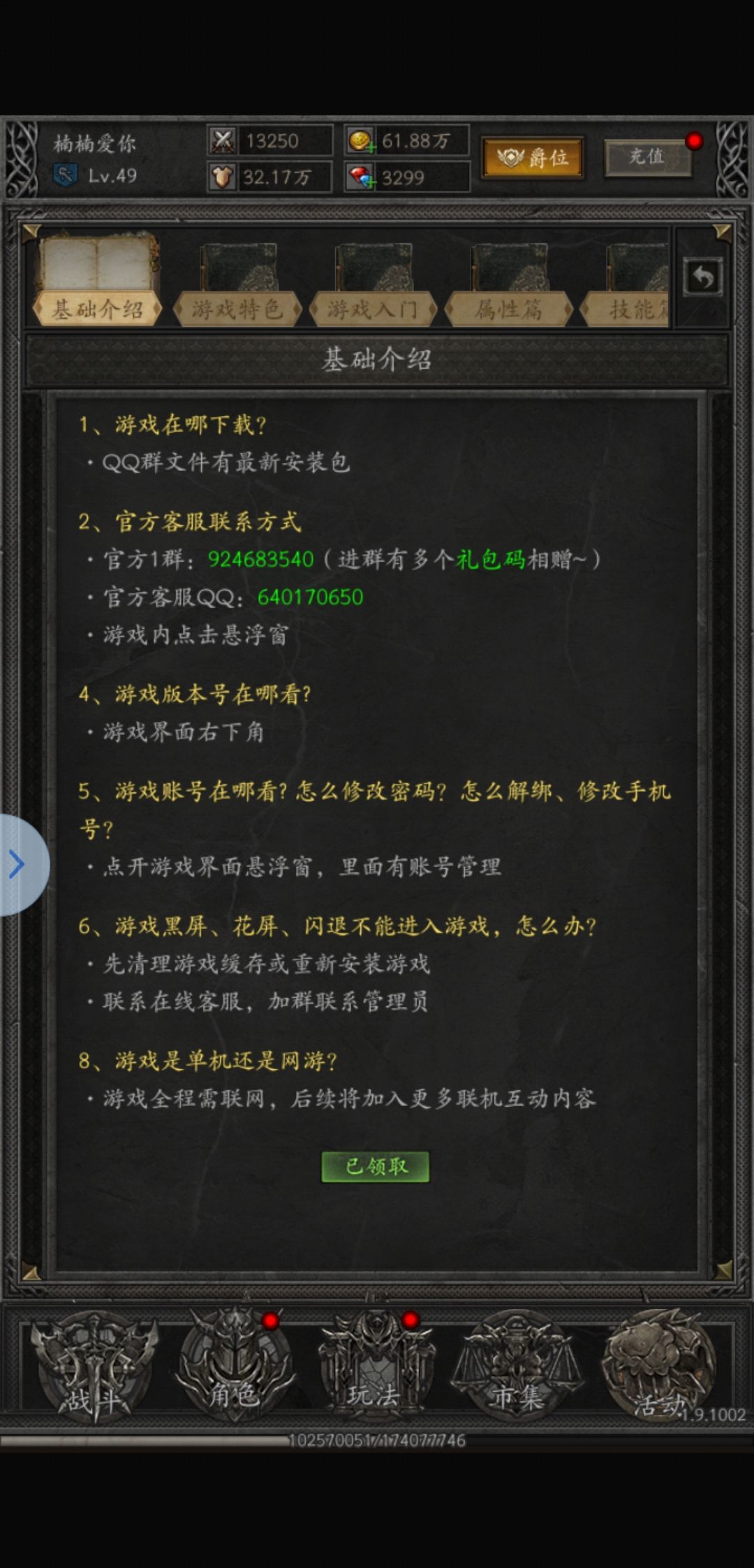 首先加群后找管理要福利,有很多码子,大概600-1000砖石。然后就是我们从游戏里获取砖石的了。