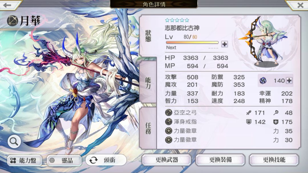 🟩月华的技能栏紧张程度并不高,因为构筑队伍原因,3技能的条件下,我们可以PASS掉--鬼獄刧波(自残技),因为在闪击阵中和梅丽莎的降风耐、在构筑中和克劳德的降突耐均会稀释,所以说如果你仅仅想多带一个技能栏而喂她书,需要三思~