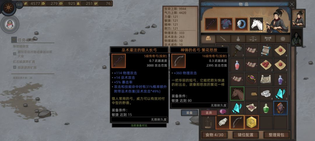 此时你已经半无敌了,去打雪山巨人洞拿初雪或者打英魂,拿了初雪就打追风拿繁华弓,再去打图书馆,异界门(这个主要用寒牙好打)繁华弓+疯狂清影+初雪,三个职业冷却点满的话,可以直接去攻城了,先打花乡在打半月集市,拿凤凰弓和龙影甲(甲必须疯狂),无敌了。