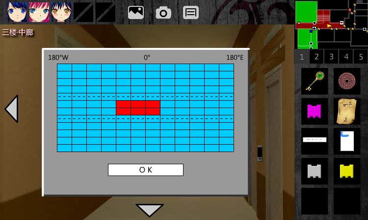 26.回到3F•中廊,右转,点击右侧密码器,解经纬网。珍弓给你提示。