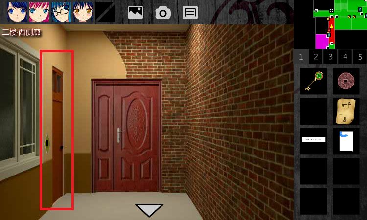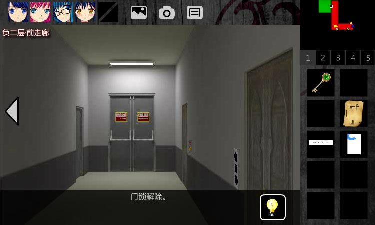 9.回到1F•电梯间。点击2F,点击左边的门,点击灯泡,点击【让珍弓帮忙】,珍弓回收【回形针】。门锁解除。